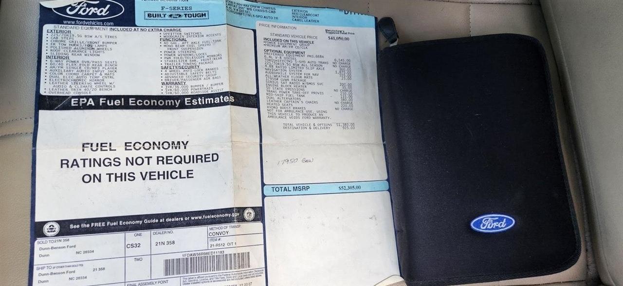 This 2008 Ford F-550 Chassis LARIAT has been fully serviced, inspected and detailed, so you can drive away in confidence, knowing you're getting a reliable vehicle in great shape. Disclaimer: Not all Vehicles qualify for the 6 month, 6,000 mile warranty. Terms and conditions apply. Please contact our dealership for more information and details. Since 1972, our family owned and operated dealership has been committed to providing top-quality vehicles. We have a full service department on-site where we recondition each car before offering it for sale. We can also assist with all your service needs after the sale. Whether its general maintenance, repairs or just keeping your vehicle in top shape. You can count on us to provide the care your car deserves even after you drive it home. To be sure you don't miss out, give us a call and schedule a test drive. We are located at 3601 Hillsborough Rd Durham NC 27705 and you call us at . We look forward to seeing you soon!